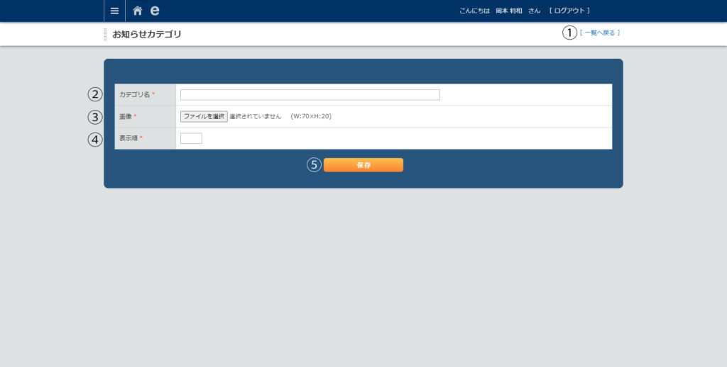 • メニューリスト>お知らせカテゴリ管理>新しくデータを作成