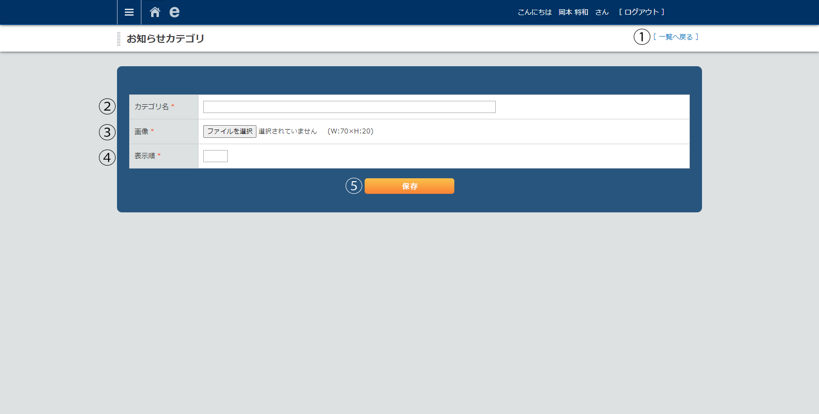 • メニューリスト>お知らせカテゴリ管理