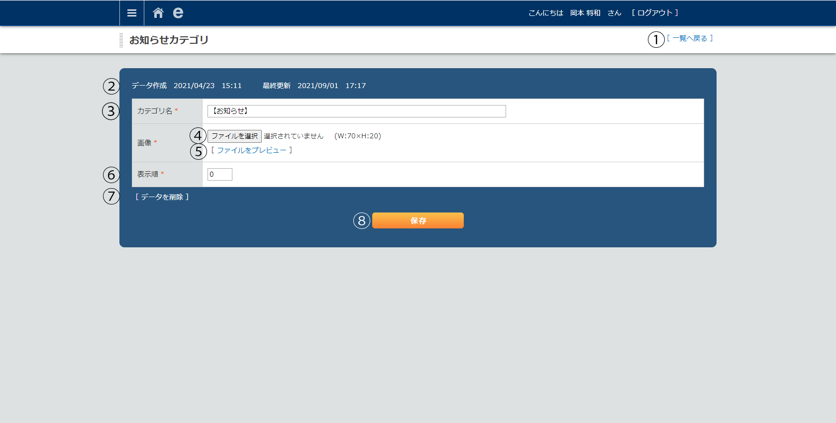 お知らせカテゴリ詳細(編集)