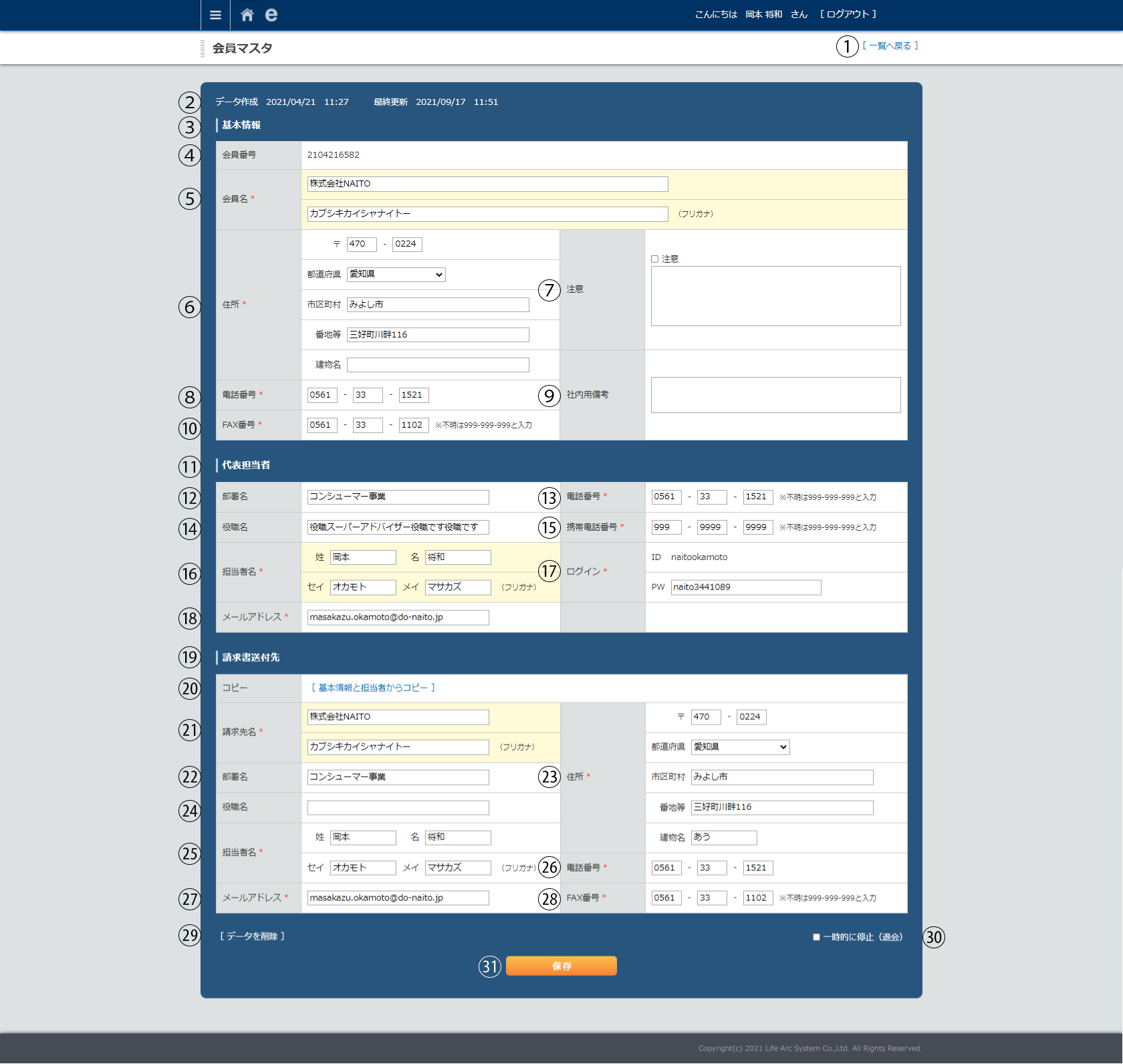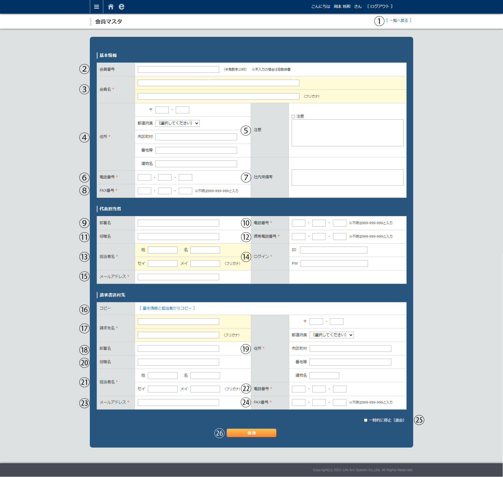 | ⑤ | 会員名 | 登録する会員名(会社名・フリガナ)を編集します。 |